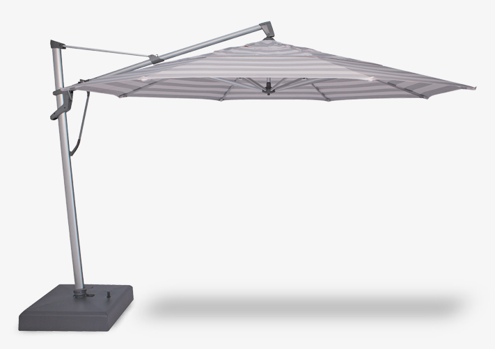 Best in "Class" cantilever umbrella, the AKZ P Lux umbrella features a wide 13ft diameter shad span offering a plethora of shade outdoors. Made from heavy cast and extruded powder coated aluminum, this umbrella twists 360 degree, tilts 50 degrees left right and backwards to cast a shadow anywhere you need it. Available in over 50 Grade A fabric choices and two frame colors (Bronze/Black) we will be able to find the perfect outdoor umbrella look desired. The AKZ also offers a variety of "mount styles" listed so be sure to call or text us questions about which option is best for you.