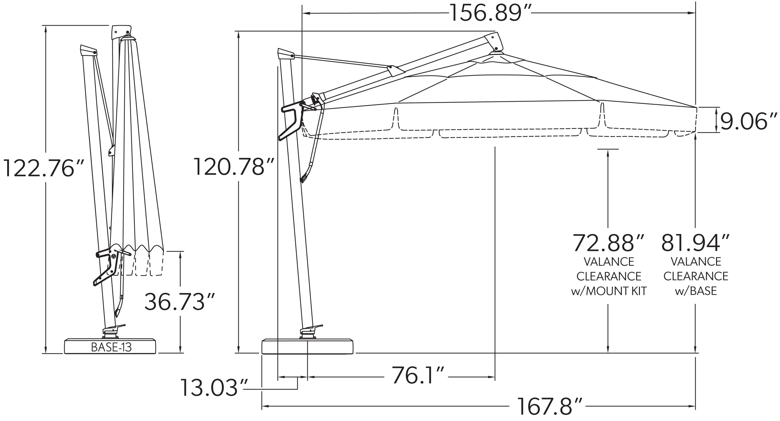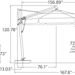 Best in "Class" cantilever umbrella, the AKZ P Lux umbrella features a wide 13ft diameter shad span offering a plethora of shade outdoors. Made from heavy cast and extruded powder coated aluminum, this umbrella twists 360 degree, tilts 50 degrees left right and backwards to cast a shadow anywhere you need it. Available in over 50 Grade A fabric choices and two frame colors (Bronze/Black) we will be able to find the perfect outdoor umbrella look desired. The AKZ also offers a variety of "mount styles" listed so be sure to call or text us questions about which option is best for you.