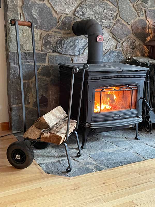 Hauling wood has never been easier with our big wheel carts large pneumatic tire design. Pilgrim’s Big Wheel Carts are made from heavy duty solid 3/8 x 1 1/2 bar stock steel. We use non-marring wheels and solid wood for our sure grip handles. You will enjoy years of use and your back will thank you! All wood carts have a durable powder coat finish added to ensure years of lasting protection. Store indoors or in a sheltered outdoor location away from direct weather and moisture.