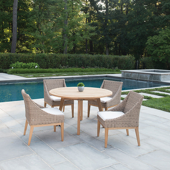The chic, sloped arm styling of Frances is relaxed yet sophisticated. Frames are constructed from only the finest all-weather wicker and sturdy bases of solid teak hardwood.