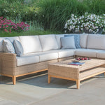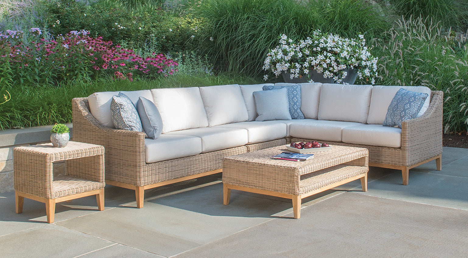 The chic, sloped arm styling of Frances is relaxed yet sophisticated. Seating pieces are deep and comfortable with plush, luxurious cushions. Frames are constructed from only the finest all-weather wicker and sturdy bases of solid teak hardwood.