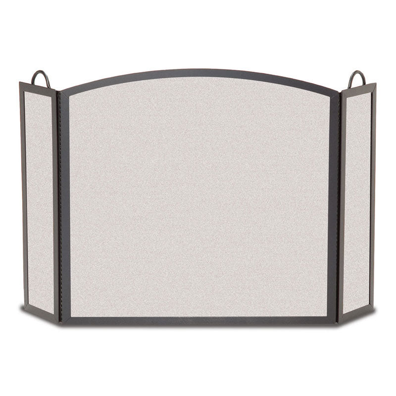Made of 100% solid quality iron bar stock – the ever so slight arch in the center panel of our Full Arch 3-panel folding screen is pleasing to the eye and ensures a precise fit against your fireplace. Additionally, piano hinged side panels help provide a more custom fit. Unlike many other cheaper screens available, we use woven screen mesh (not stamped metal) of a heavier wire construction – 8 strands of wire per inch provide maximum safety against hot sparks and embers. Handsome minimalist forged handles at the top of both side panels allow for easy transport for tending the fire. You will love this screen as much as we do, you won’t be disappointed. Available in multiple sizes and finishes.