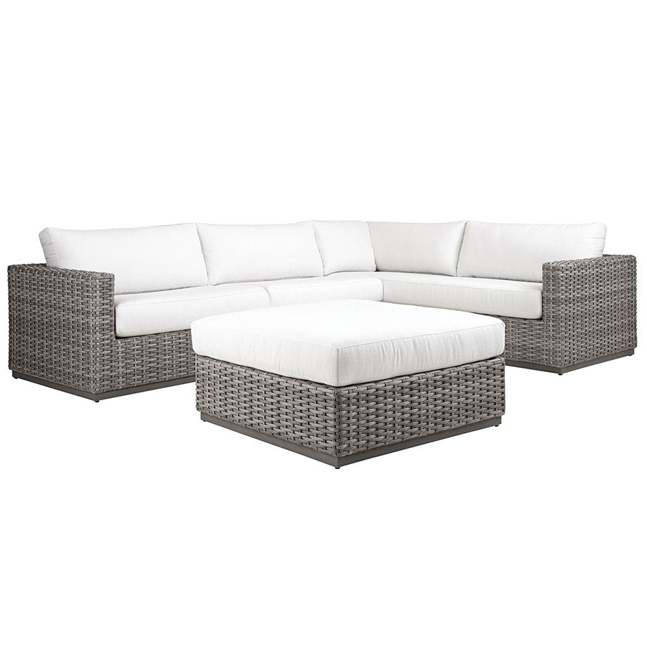 Experience the contemporary simplicity of the Hyannis collection. Seating and modular pieces exude modern sophistication with their clean, modern shape, plinth base, and wide-rounded weave in Nantucket Fog. The occasional tables, crafted from durable Resysta in Shale, are designed to replicate the wood look.