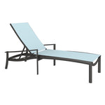 Inspired by mid-century modern design, the contemporary KOR Sling Chaise Lounge features an edgy design with a curved back and arched, angled legs. The outdoor chaise lounge features Tropitone's durable sling fabric, creating a modern look and enhancing comfort. KOR Sling Chaise Lounges nest for easy storage and will make a statement around the pool or at the beach. GRADE A Fabric pricing reflected, stocking fabric shown.