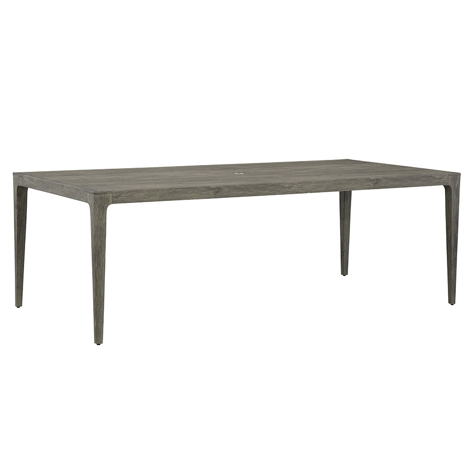 - FEATURES: All Aluminum with hand-rubbed finish technique that emulates a weathered look. Unbrella Hole. Seats 6-8