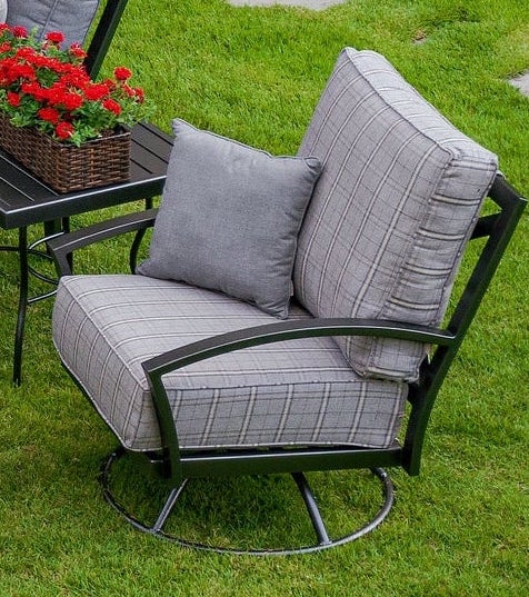 The Maddux collection offers a classic design and a slightly more formal look detailed with elegantly designed plush, double piped cushions providing exceptional comfort. As the years go by, these clean lines with attention to detail will make your backyard, patio or porch a favorite respite for spending time with family and friends. Maddux can complement several areas with dining, deep seating or chat. Stocked in Pewter with Cast Silver Fabric