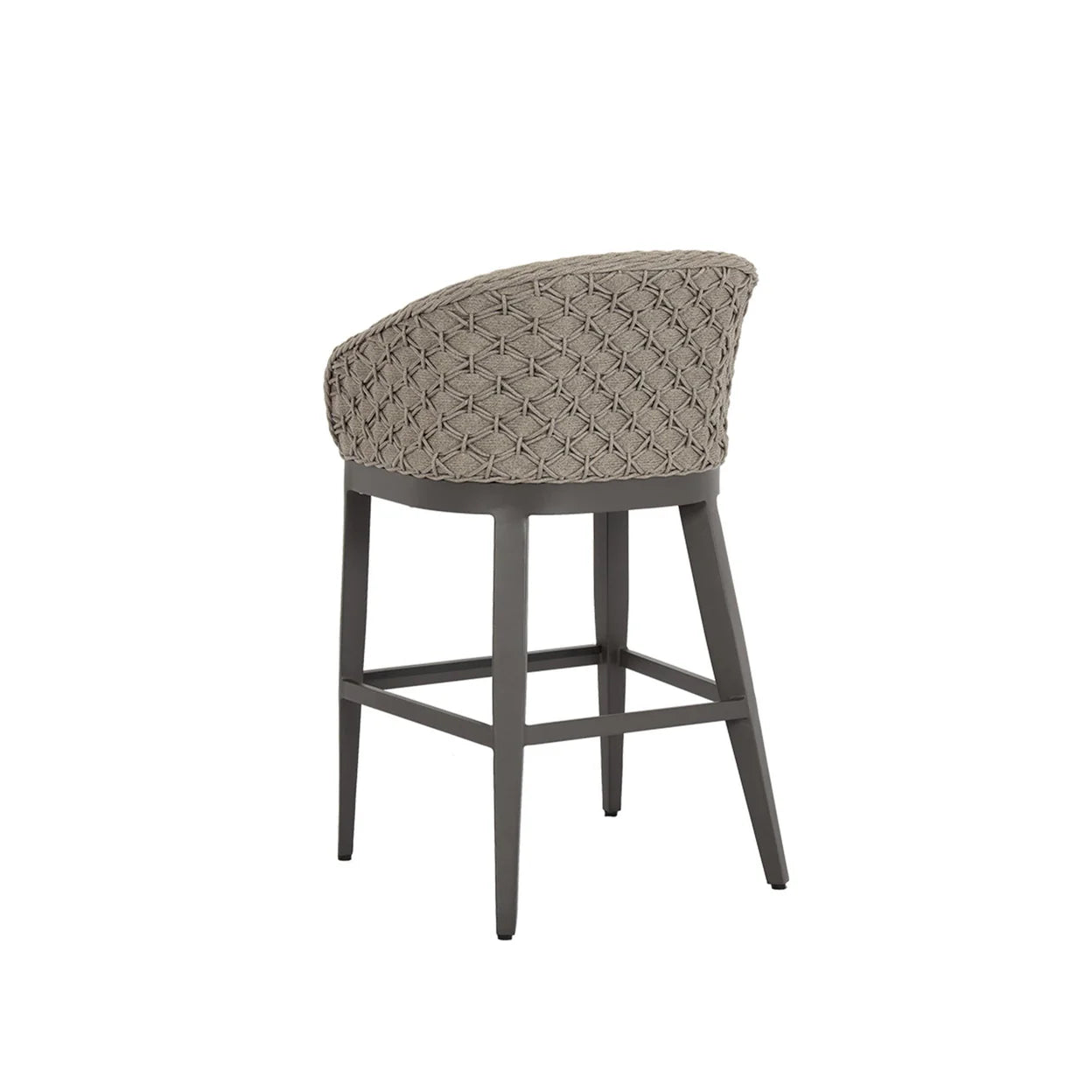 Inspired by the desire to explore pattern and new weaving techniques, the Marbella reimagines form and material to create an incredibly unique statement. The Marbella Barstool features a complex handwoven rope design with curved back and sloping arms, and tapered leg in powder-coated aluminum.