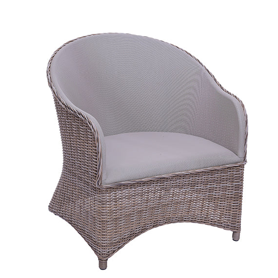 Milano reinvents classic wicker styling with a modern upholstered seating surface, eliminating the need for a cushion. Seats are gently padded with reticulated (flow through) foam that drains quickly when wet. Upholstered surfaces are crafted from Batyline™, a 100% vinyl-coated polyester textile that is durable, fade resistant and easy to care for. Stocked in two color combinations: Driftwood wicker with Taupe sling or Shadow wicker with Gray sling. Ships two per carton.