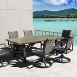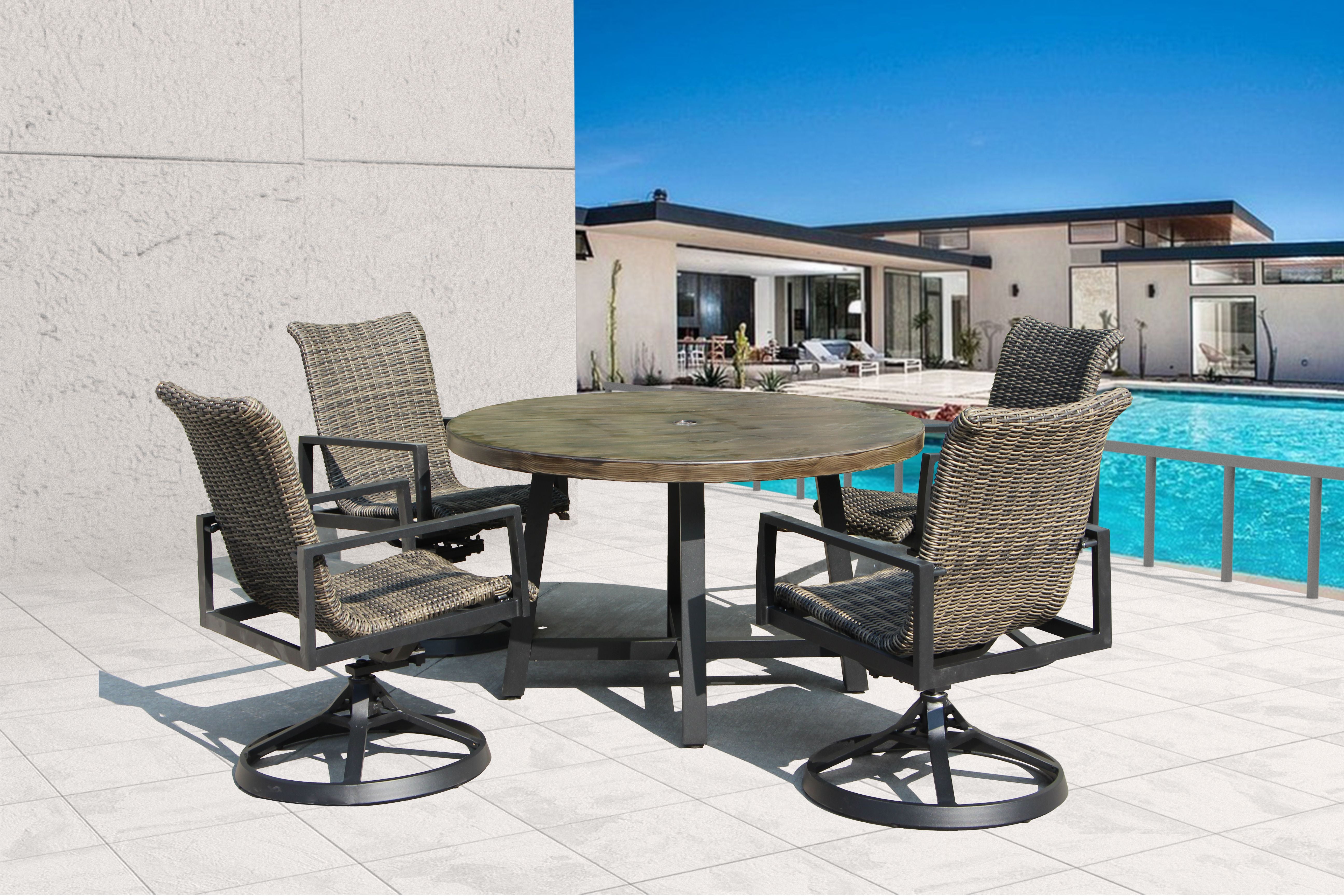 For over 30 years, Vista has established itself as a premier manufacturer of luxury outdoor aluminum and resin woven products. Newport woven dining is made from the finest quality raw materials available. The aluminum is laser etched to mimic the most realistic wood grains, tapering the aluminum using state of the art robotic welding machines. The woven seat buckets are done by experienced craftsmen whose artistry and skill result in beautifully weaved patterns.
