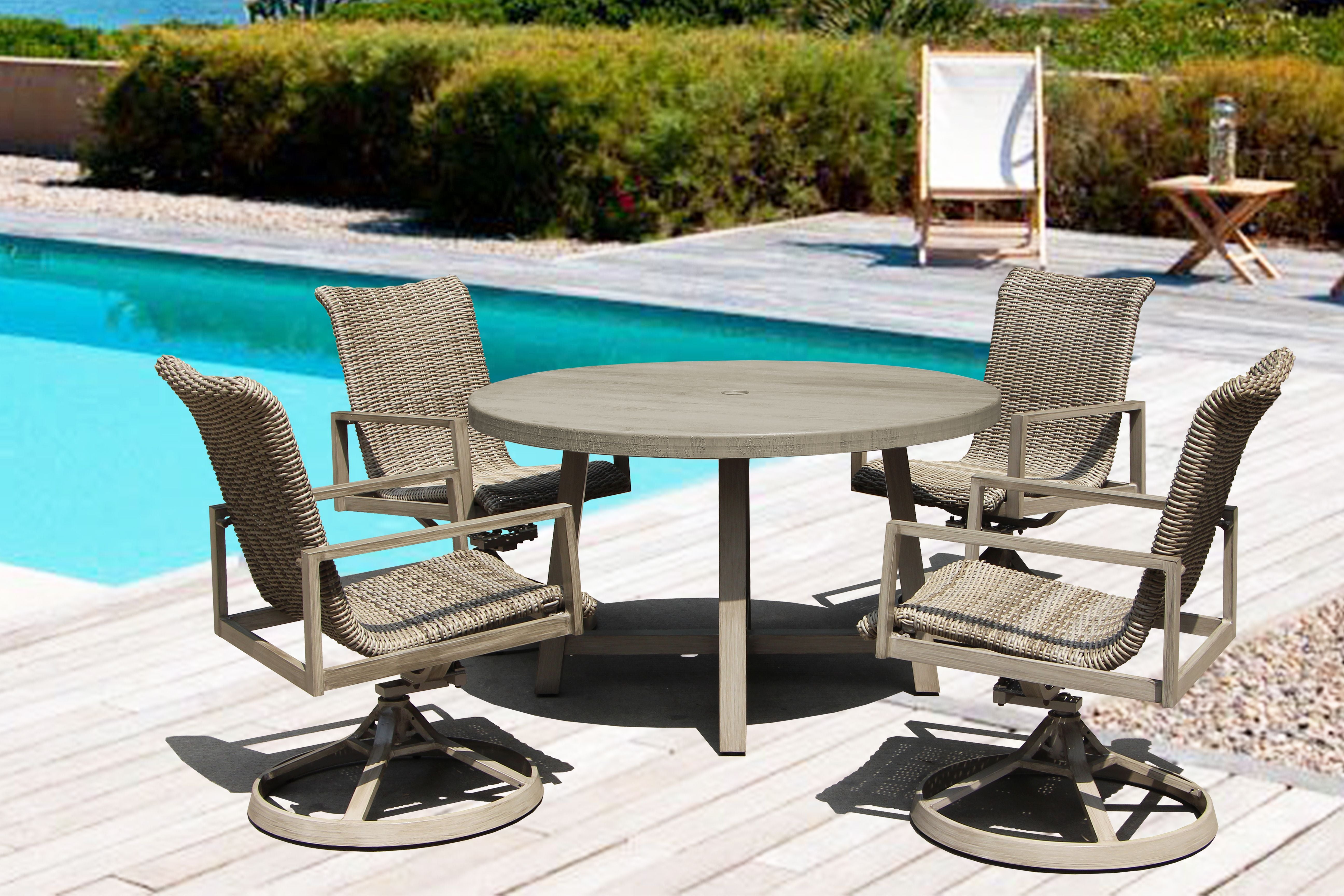 For over 30 years, Vista has established itself as a premier manufacturer of luxury outdoor aluminum and resin woven products. Newport woven dining is made from the finest quality raw materials available. The aluminum is laser etched to mimic the most realistic wood grains, tapering the aluminum using state of the art robotic welding machines. The woven seat buckets are done by experienced craftsmen whose artistry and skill result in beautifully weaved patterns.