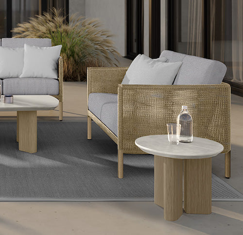 - DURABLE | Rich, variegated weaves are handwoven onto powder-coated aluminum frames designed to stand the test of time.