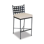 Constructed in expertly crafted wrought iron, the Provence Bar Stool displays a woven back to emulate basket weave, and subtly brushed Century Pewter antique finish. Gently bowed arms and generous seat are scaled for absolute comfort. Canvas Flax Sunbrella.
