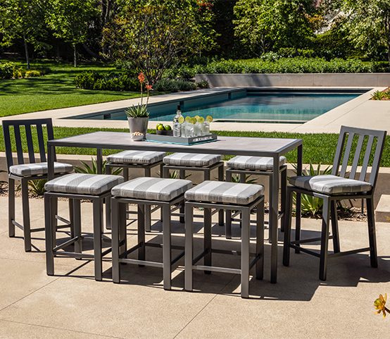 Quadra Dining Tables are fully welded rectangle dining tables that fit 6 to 8 counter chairs easily. These tables are known for their slim and compact design while still being able to sit many at the table. Made from fully welded steel and powder coated in many different colors, the Quadra table features a WIDE variety of porcelain tile top choices to get the exact custom look you want!