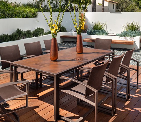 Quadra Dining Tables are fully welded rectangle dining tables that fit 6 to 8 chairs easily. These tables are known for their slim and compact design while still being able to sit many at the table. Made from fully welded steel and powder coated in many different colors, the Quadra table features a WIDE variety of porcelain tile top choices to get the exact custom look you want!