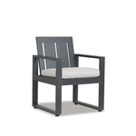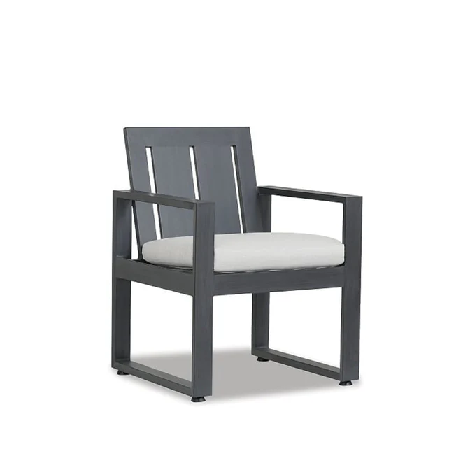The Redondo Dining Chair blends modern and industrial sensibly into one striking design, featuring a wide slat back and linear frame, crafted in powder coated aluminum with a hand-brushed Slate finish.