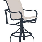 Inspired by the graceful curves of the beach, the Shoreline Sling Swivel Bar Stool boasts graceful arm supports and a sturdy well-crafted aluminum frame, which offers durability and ergonomic support. The Shoreline Sling Bar Stool features designer fabrics slung across the seat and back frame to provide full-body support. Pair this classic outdoor patio bar stool with a Tropitone® Bar Height Table for your own private seaside escape. Grade A fabric pricing reflected