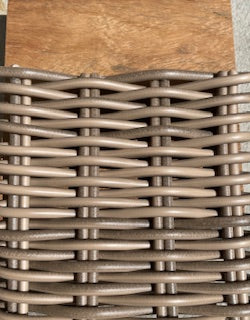 Our Spencer collection has a slender, modern design with mid-century flair. Frames are constructed from solid, Grade A teak, then woven with all-weather wicker for style and durability. Seating pieces feature thick, comfortable cushions