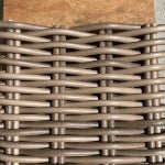 Our Spencer collection has a slender, modern design with mid-century flair. Frames are constructed from solid, Grade A teak, then woven with all-weather wicker for style and durability. Seating pieces feature thick, comfortable cushions.