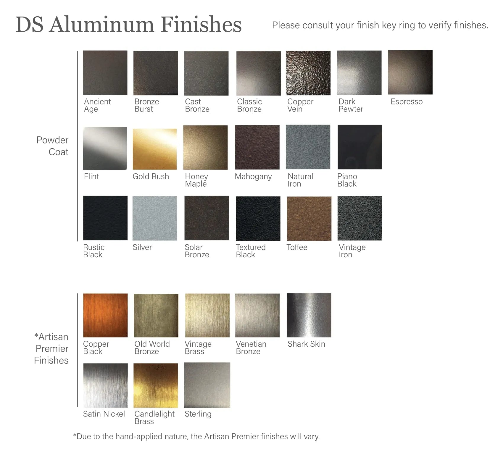 - Available in Powder Coat, Anodized & Artisan Premier Finishes