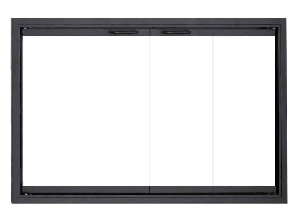 Custom made fireplace doors to exactly fit your fireplace, choices include: door operation, frame and glass color, and handle. All in one price. We do offer measure and installation services in addition to the cost of a custom glass door.