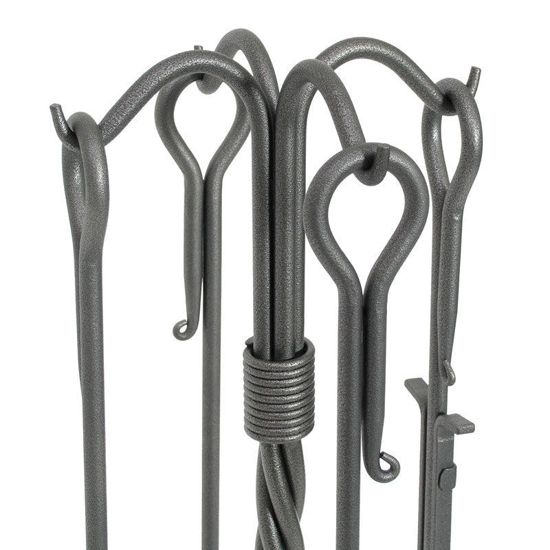 Turn back to simpler times with our Traditional tool set. The base features a hand-forged spiraled braid that is offset with coiled designs at top and bottom. With great attention to detail, our Traditional tool set weighs 22 pounds and finished in vintage iron or burnished bronze.