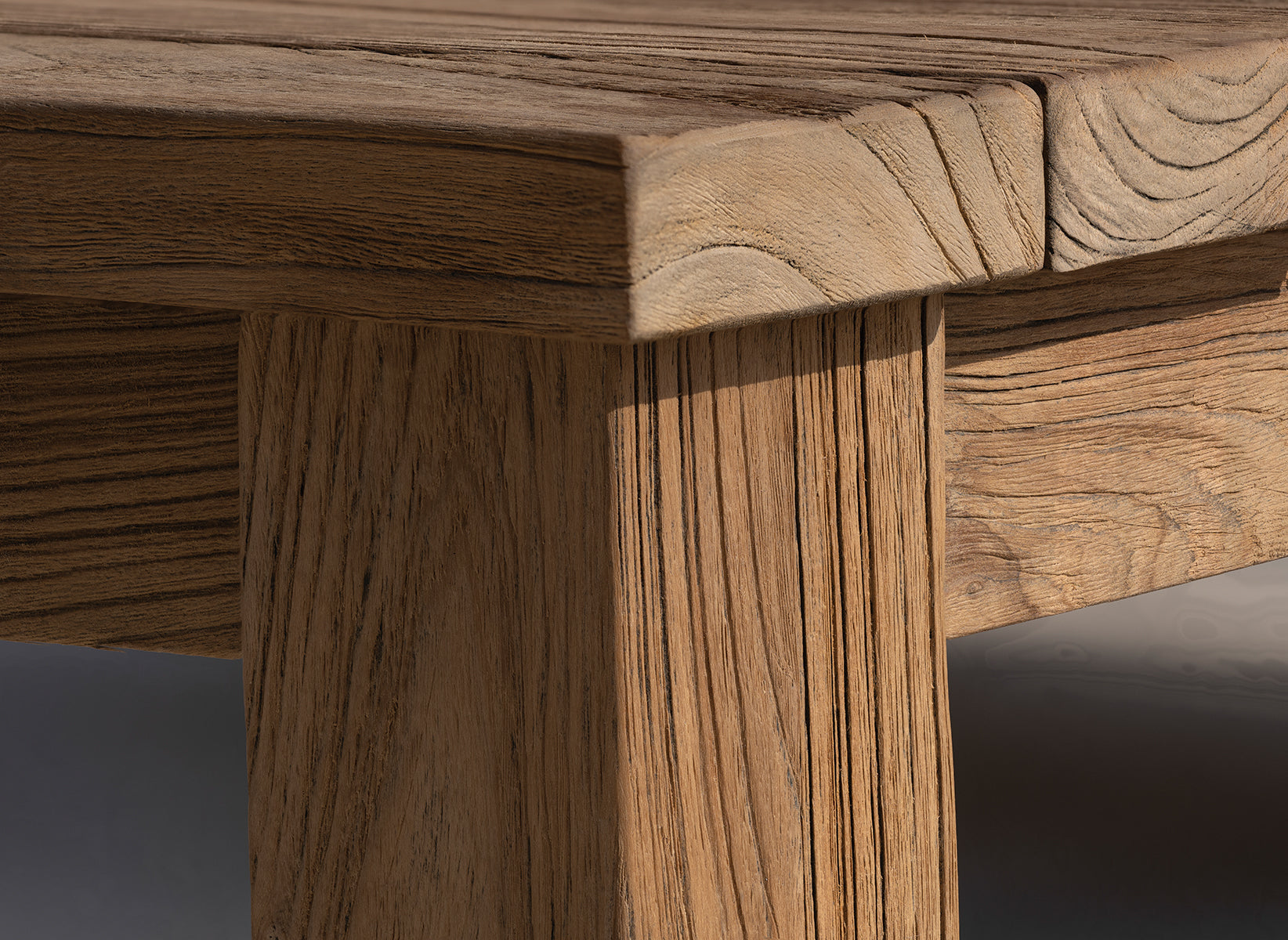 Tuscany tables and benches are made from solid, distressed teak wood. Knots, checking, and other imperfections give each piece its own unique character – no two items are exactly alike.